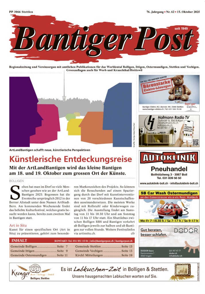 Das Büro der Bantiger Post ist aufgrund einer technischen Störung telefonisch bis auf Weiteres nicht erreichbar.